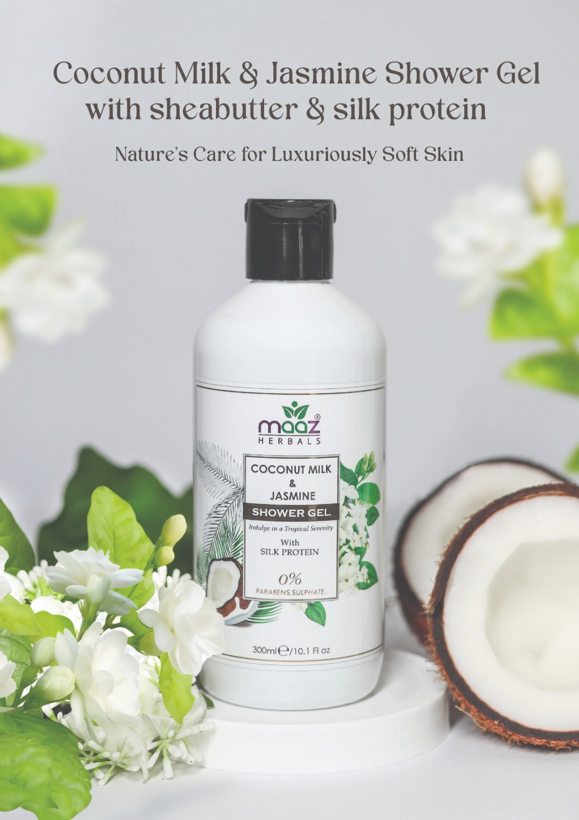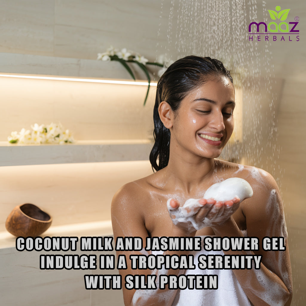 Indulge in a tropical serenity with Maaz Herbals Coconut Milk and Jasmine Shower Gel. Infused with the natural goodness of coconut milk and jasmine hydrosol, this luxurious shower gel gently cleanses and hydrates your skin, leaving it silky smooth and delicately fragranced.