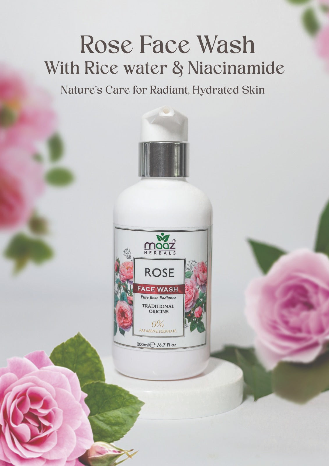 Discover the gentle care of Maaz Herbals Rose Face Wash. This Sulphate- and Paraben-Free cleanser is infused with organic roses and aloe vera extract to deeply clean while maintaining your skin’s natural moisture balance. Its soothing formula effectively removes dirt, oil, and impurities, leaving your skin soft, refreshed, and radiant.