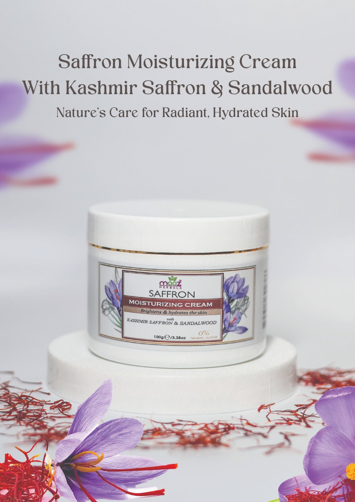 Reveal your skin’s natural glow with Maaz Herbals Saffron Moisturizing Cream. This Parabens- and Sulphate-Free cream combines the radiance-boosting power of Kashmiri saffron with the nourishing benefits of sandalwood essential oil. Its rich, creamy formula provides deep hydration while brightening the complexion, leaving your skin smooth, radiant, and refreshed.